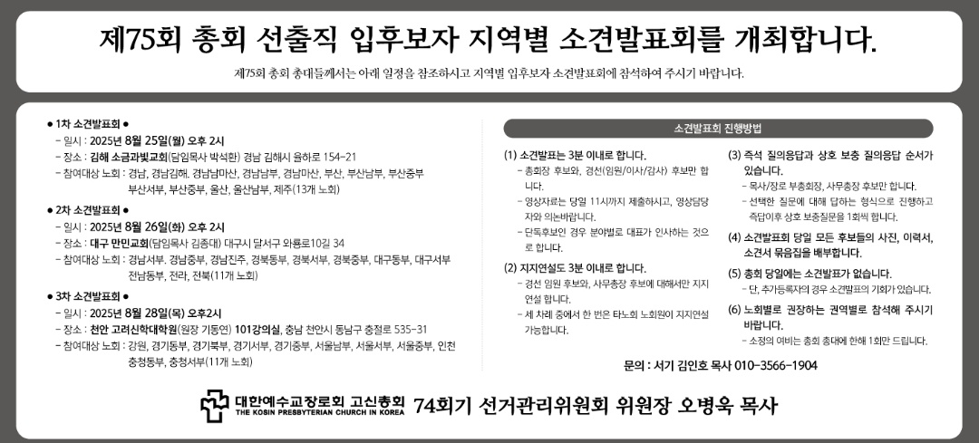 제75회 총회 선출직 입후보자 지역별 소견발표회 일정안내