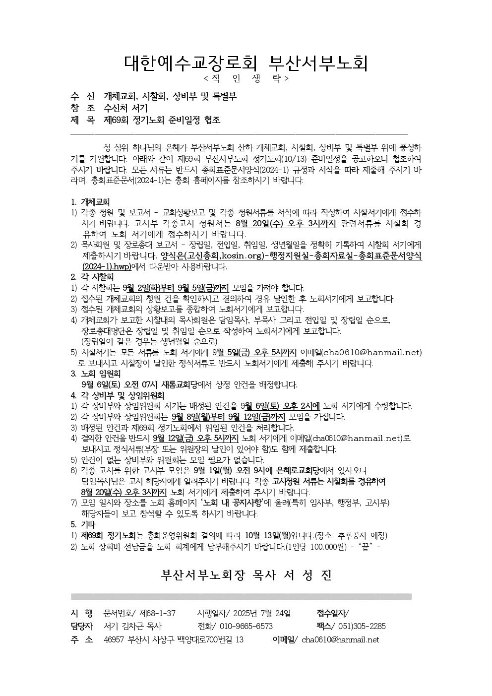 부산서부노회 홈페이지 관리자 변경공지 (허성실목사에서 노회부서기로)