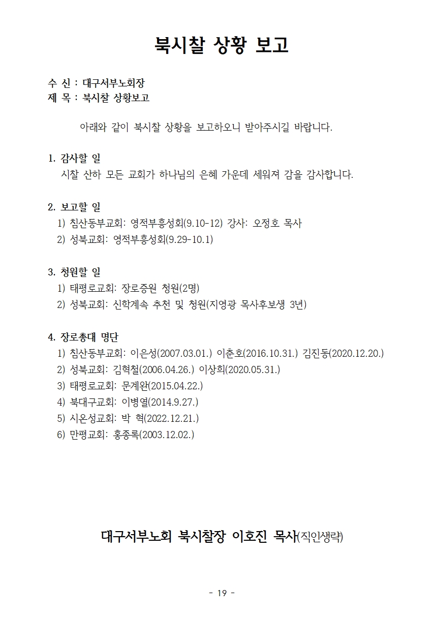 2021년 제79회 정기노회 칠곡동시찰회 상황보고