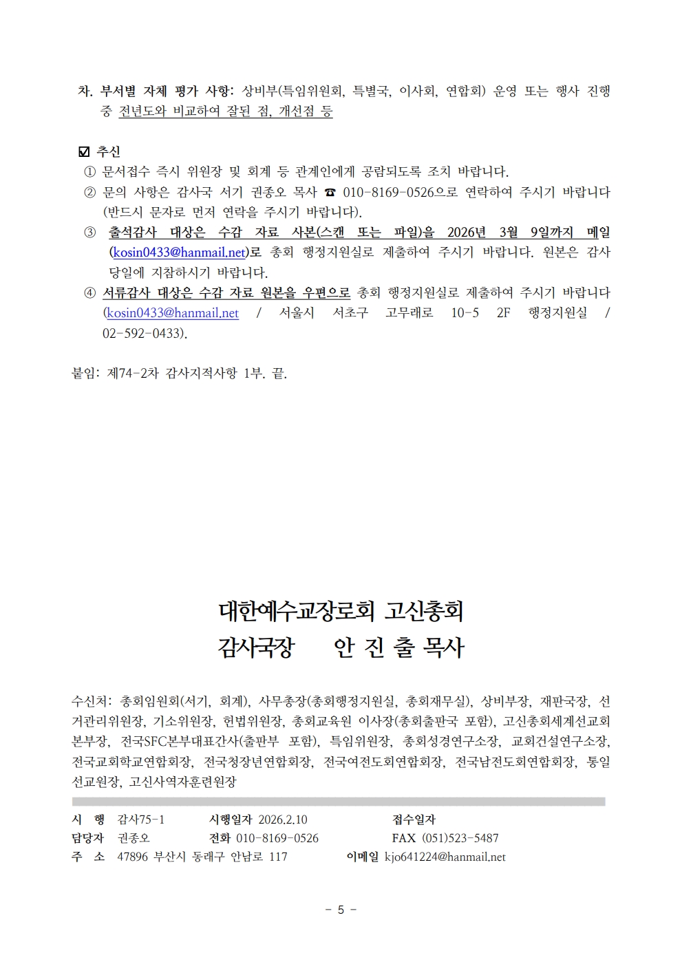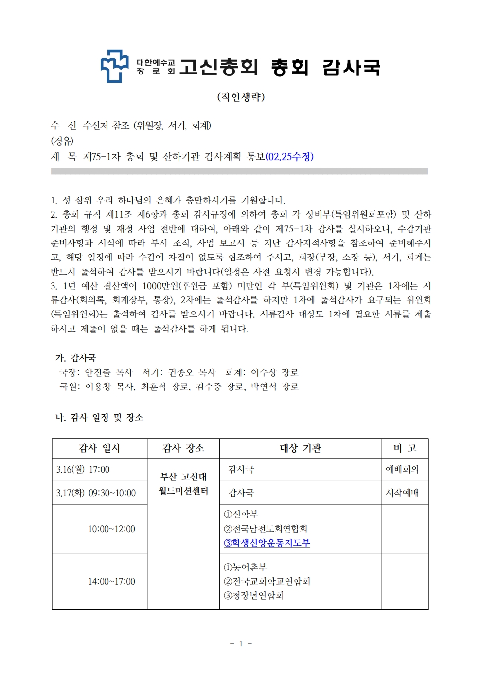» 제75-1차 총회 및 산하기관 감사계획 통보 file kosin 2026.02.10 1074