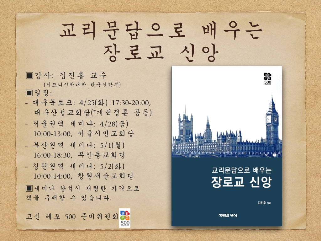 - 부산세미나: 5/1(월) 오후4시-6시30분, 부산동교회당