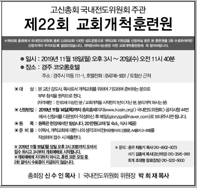 ### 제22회.교회개척훈련원 안내