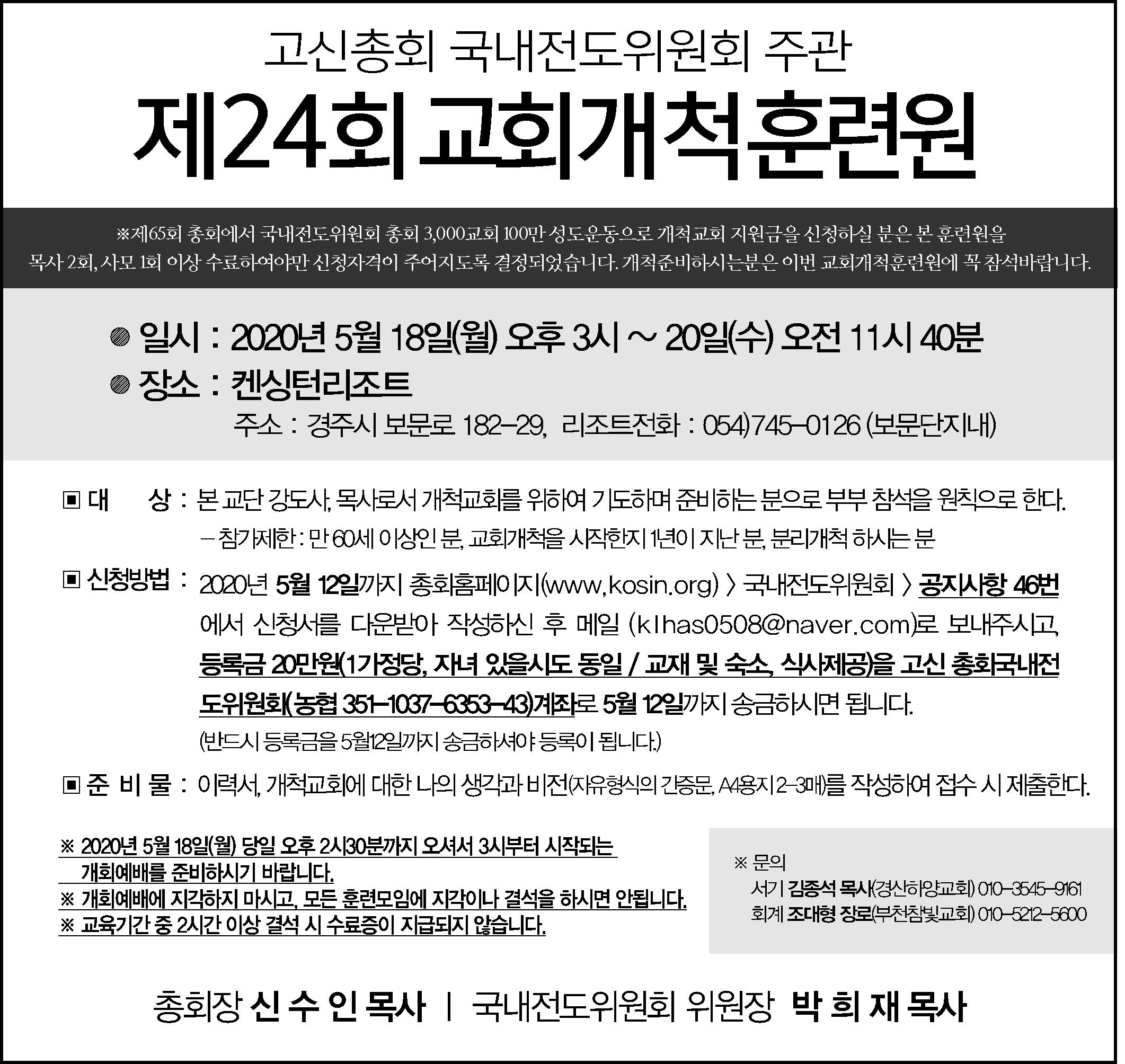 제24회 교회개척훈련원 안내