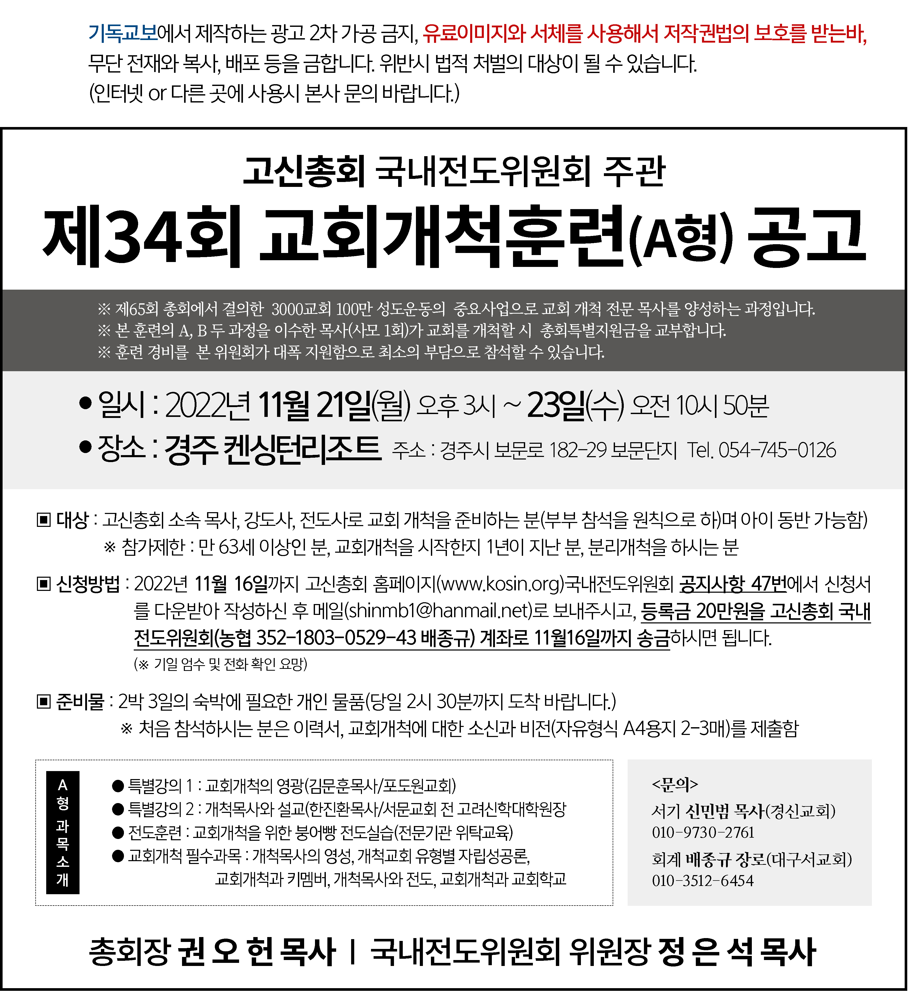 | 55 | 제31회 교회개척훈련원 안내 | 전도부 | 2022.01.19 | 1398 |