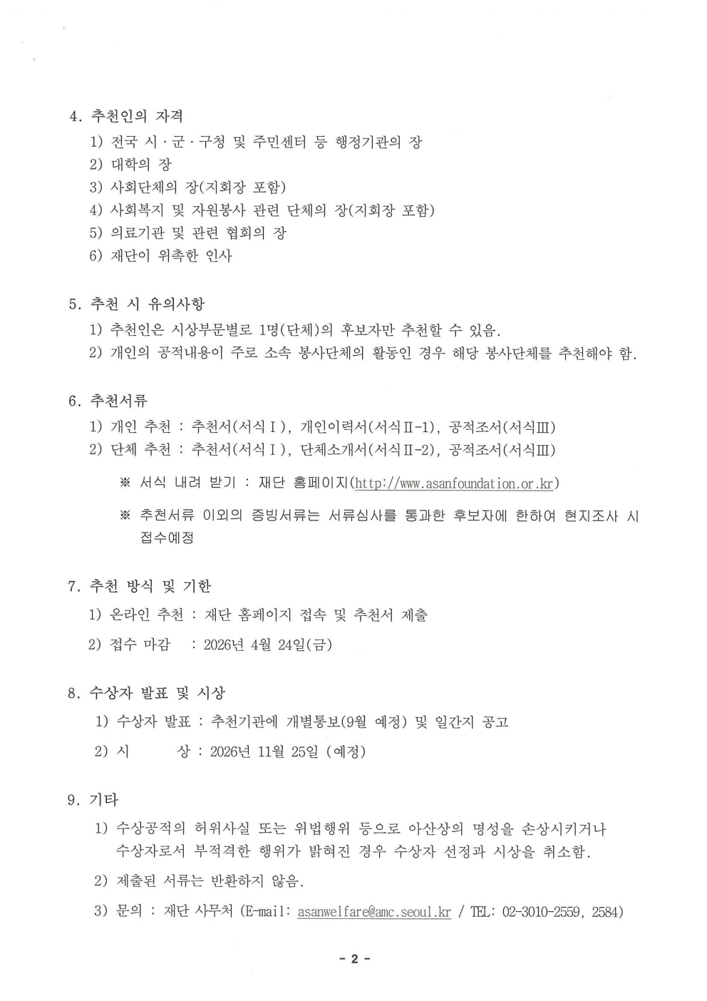 » [아산사회복지재단]제38회 아산상 수상 후보 추천 의뢰 안내 file kosin 2026.04.01 253