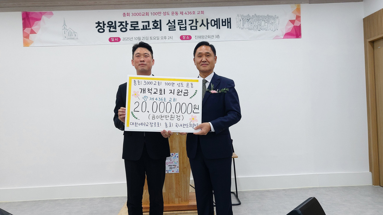 » 총회전도부 지원 제436호 창원장로교회 설립감사예배를 드리다 file 전도부 2025.11.18 48
