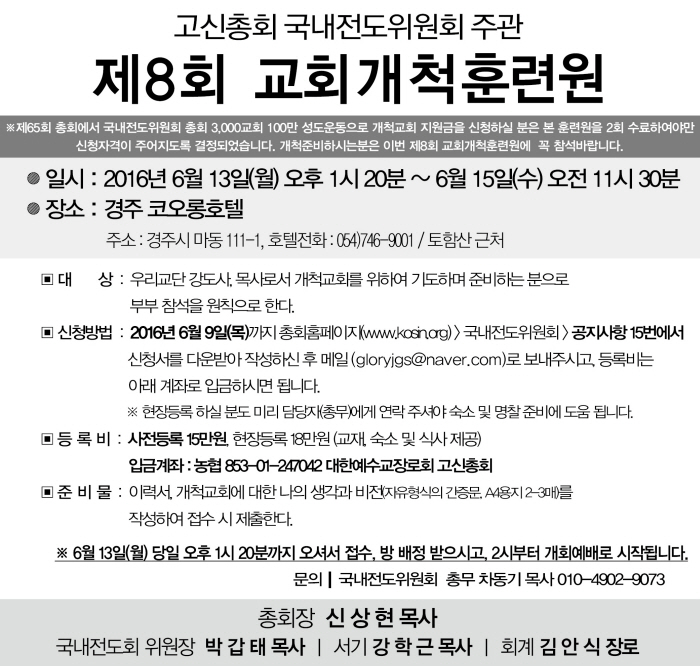 국내전도위원회 주관 '개척교회 목사부부초청 세미나'(2015년)