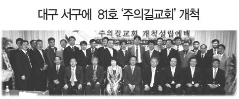 총회 3000교회100만성도 운동 81호 교회로 지정된 '주의길교회'(가칭, 개척교역자 조기석 목사) 개척설립예배가 북부산노회 주관으로 지난 524일 오후 2시 대구 서구 주의길교회당에서 총회 국내전도위원회(전도위) 임원들과 북부산노회 관계자들과 구서동교회 성도들, 고려신학대학원 55회 동기들 등이 참석한 가운데 드려졌다.