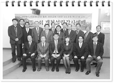 총회 3000교회100만성도 운동 제127호 교회로 지정된 마산노회 '예찬들교회'(가칭) 개척설립감사예배가 지난 38() 오후 2시 경기도 고양시 일산동구 백석동 예찬들교회당에서 총회 국내전도위원회(전도위) 임원들과 마산노회 관계자들과 마산노회 남전도회연합회원들, 마산삼일교회 등 90여 명의 성도들이 참석한 가운데 드려졌다.