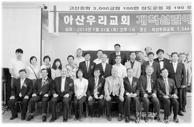 총회 3천교회 1백만 성도운동 제190호 교회로 아산우리교회(가칭)가 지정되어 지난 731() 오후 1시 경남 충남 아산시 신창면 남성길 128에 소재한 아산우리교회당에서 총회 국내전도위원회(위원장 신상현 목사) 임원, 충청노회 회원들과 성도들이 참석한 가운데 개척설립예배를 드렸다.