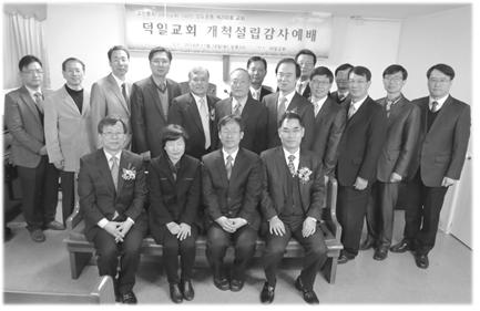 김순만 목사(문정중앙교회)의 인도로 드려진 이날 감사예배는 노은환 목사(압구정교회)의 기도, '세상 사람들도 칭찬하는 교회'라는 제목으로 덕일교회 당회장 김낙춘 목사(빛소금교회)의 설교, 오경재 목사(방배제일교회)의 축사, 국내전도위원장 고신원 목사(학장소망교회)의 격려사 및 교회개척지원금 15백만원 전달식, 신대원 64회 동기회의 축가, 덕일교회 김성훈 목사의 인사, 남서울노회 강영진 목사(강남교회)의 축도순으로 진행됐다.