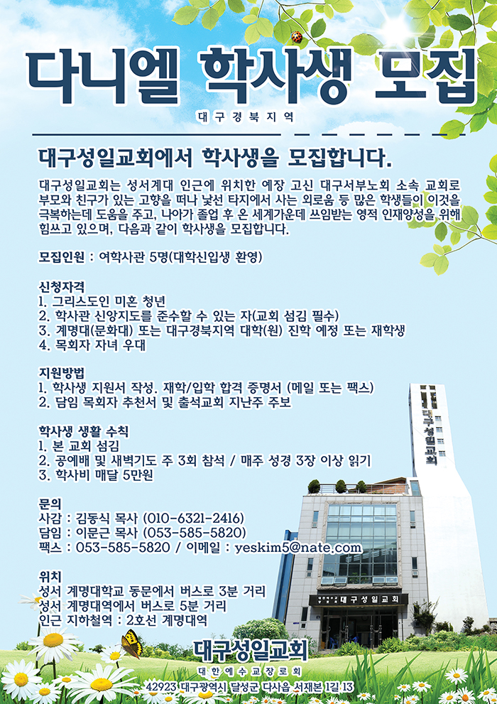 10 대구청구교회에서 학사생을 모집합니다 file 박진관 2020.03.18 2098