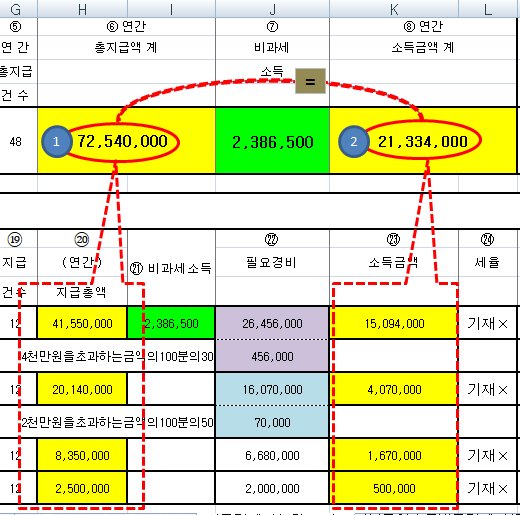 8번 연간 소득금액 계 가 같아야 된다고 하셨는데