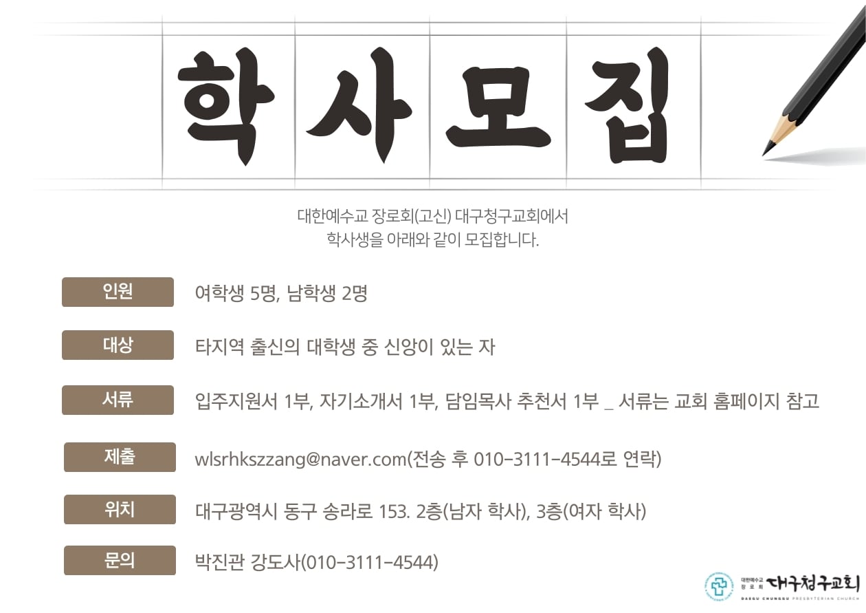 10 대구청구교회에서 학사생을 모집합니다 file 박진관 2020.03.18 2098