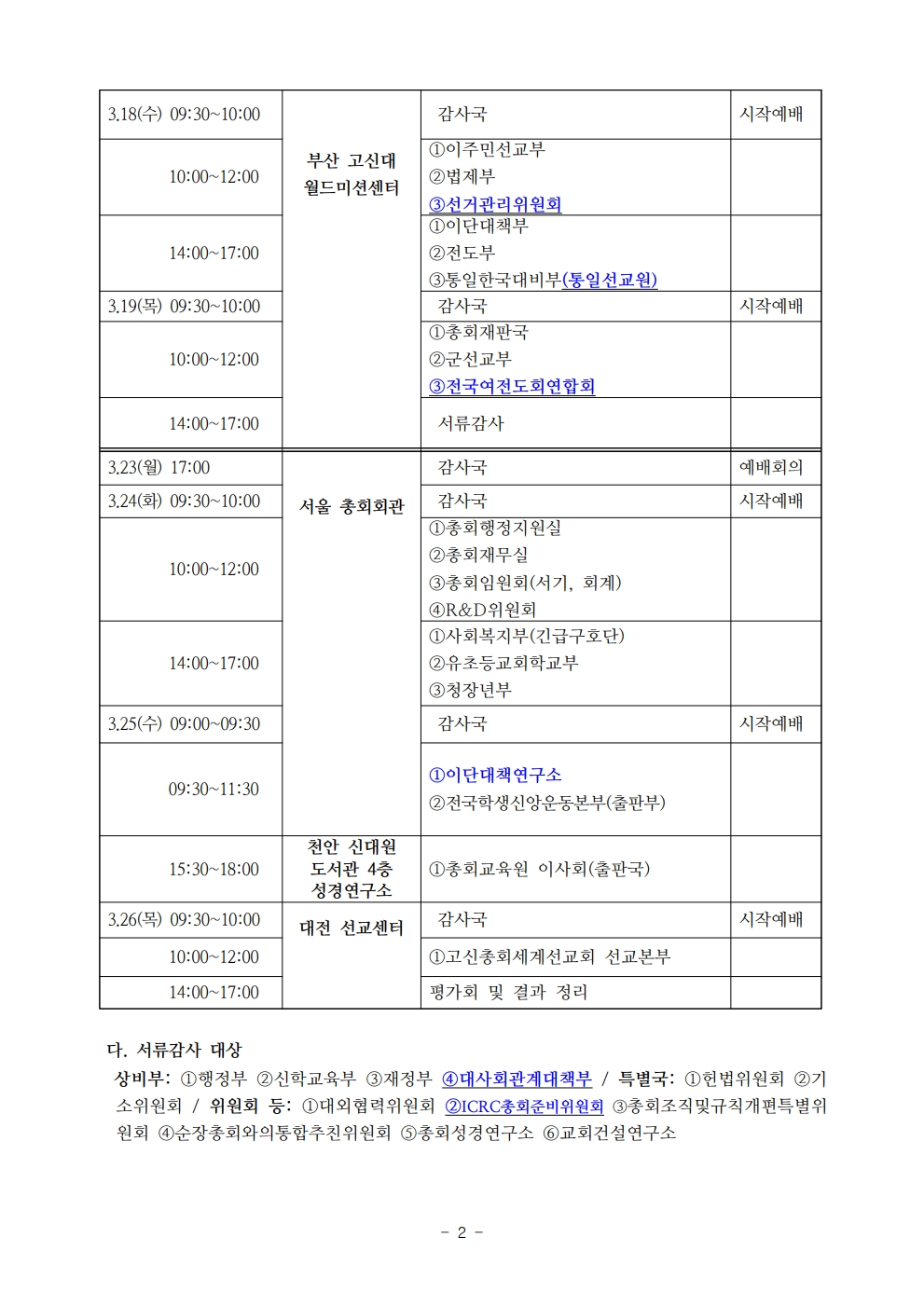 11. 제74-2차 총회 및 산하기관 감사계획 통보