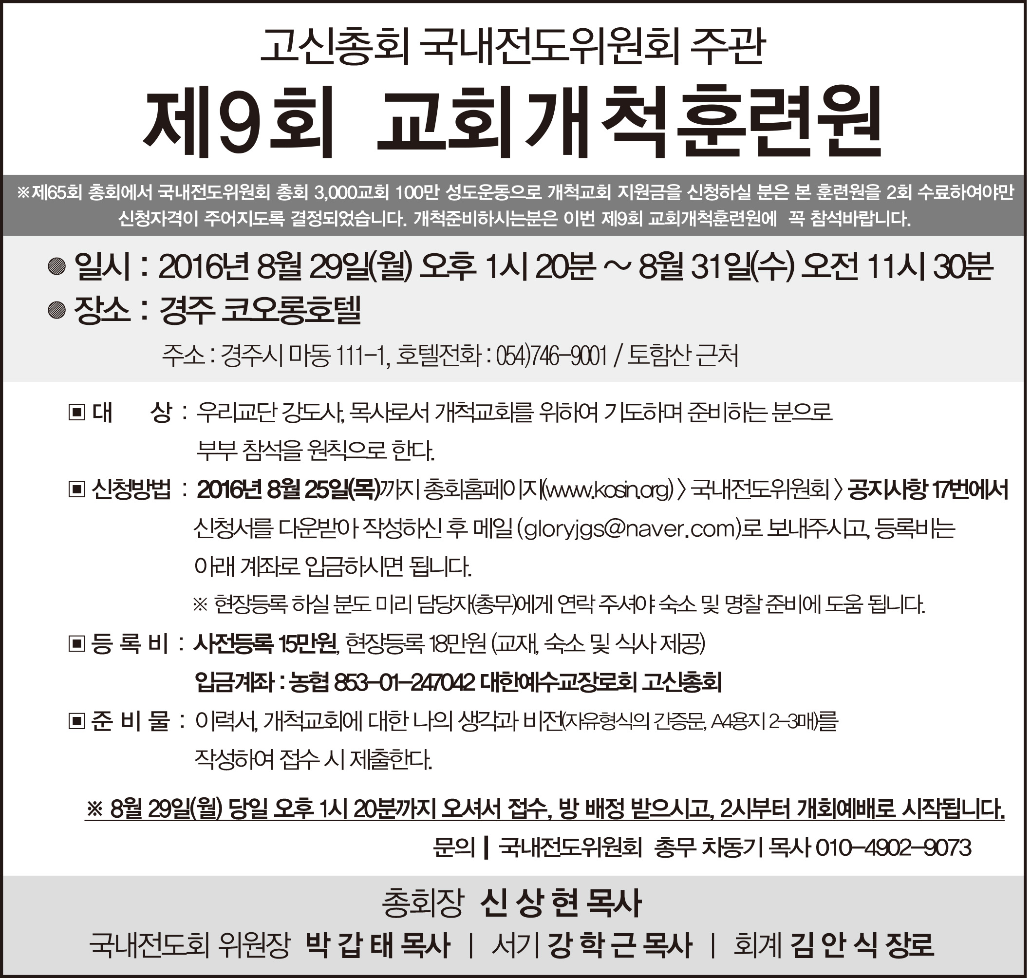 44 제10회.교회개척훈련원 안내 file 하사랑 2016.10.25 804