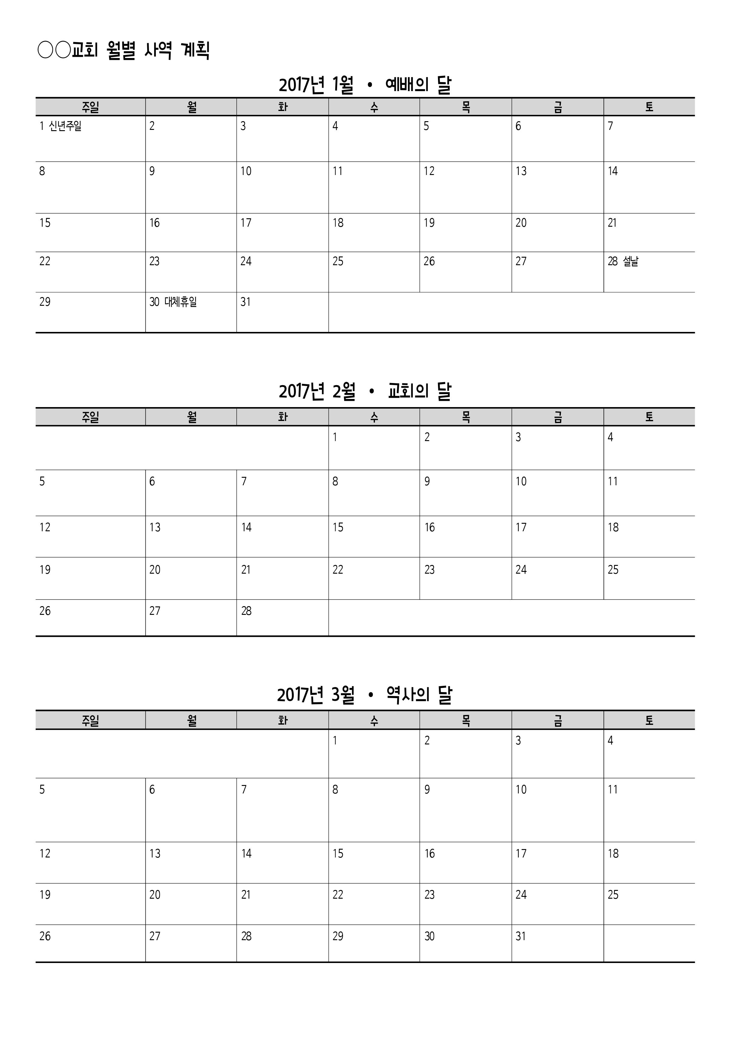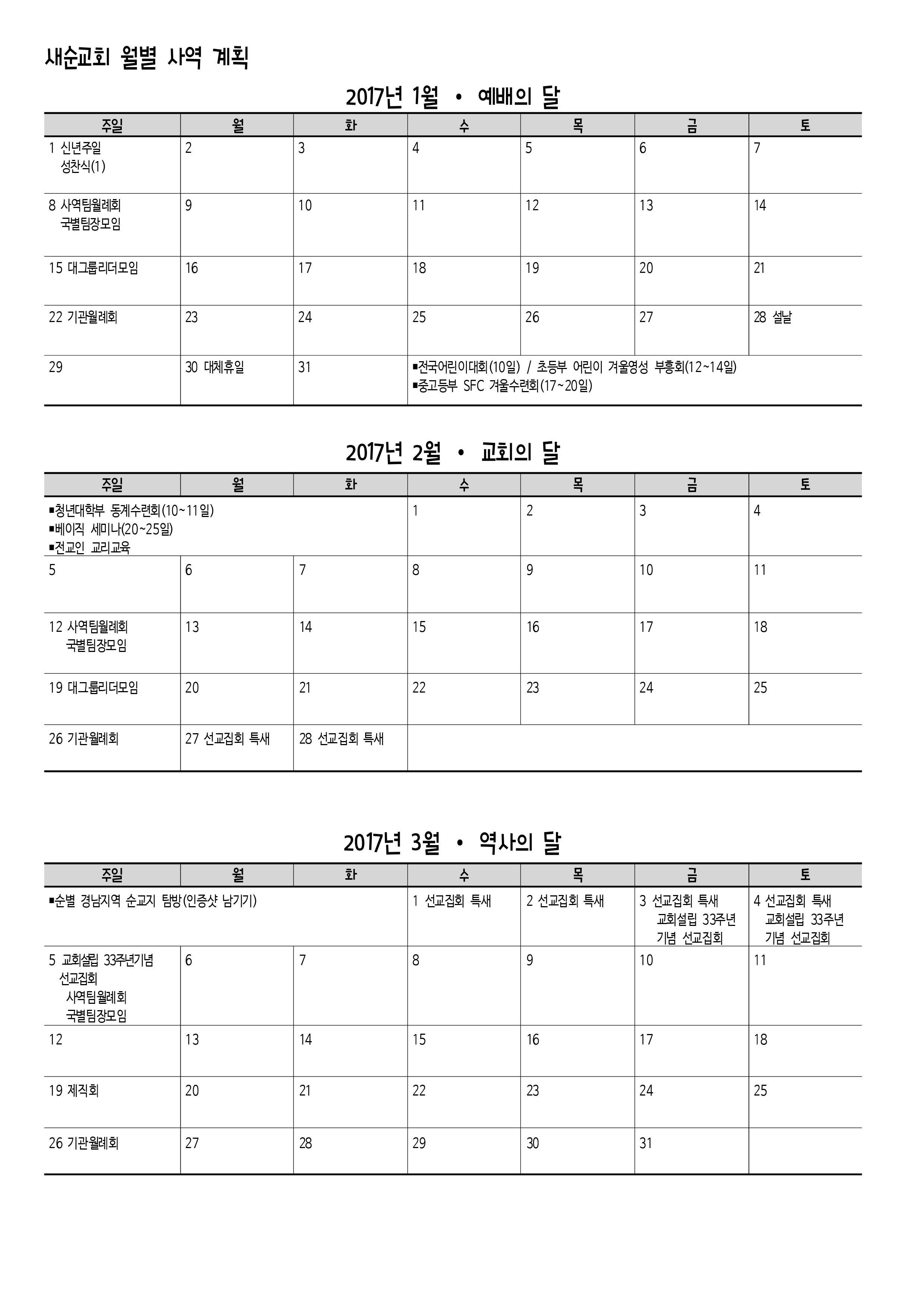 » 2017년 월별사역계획서 양식 샘플 및 예시(새순교회) 자료입니다. file 종교개혁500주년관리자 2016.12.19 1124